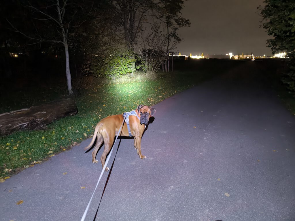 Wenn Argus und ich abends losziehen, wird’s oft schon stockdunkel. 🌙