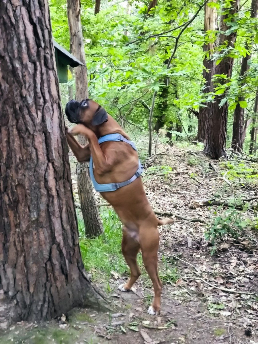 Da mein Boxer bei heißen Temperaturen relativ schnell die Kondition verliert, suche ich im Sommer oft schattige Wege im Wald oder in schattigen Tälern. Bei kälteren Temperaturen achte ich darauf, dass er nicht längere Zeit auf dem kalten Boden liegt, damit er sich nicht unterkühlt und erkältet.