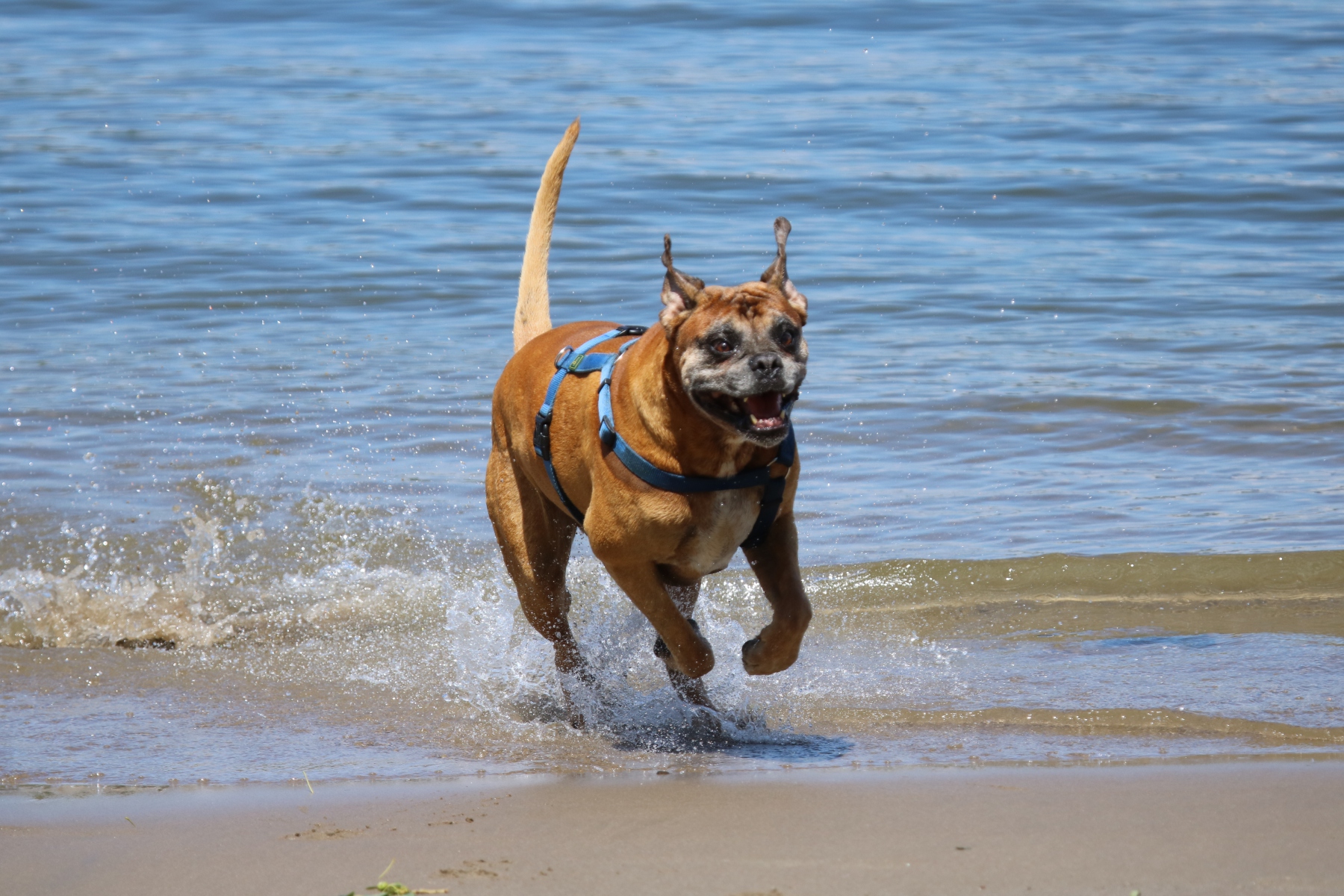 Der Deutsche Boxer eignet sich optimal als Begleithund beim Wandern. Durch sein waches und aufmerksames Wesen bereitet er dem Wanderer viel Vergnügen und bietet zusätzlich Schutz in unklaren Situationen. Wegen seiner hohen Ausdauer kann er auch auf längeren Wanderungen gut mitgenommen werden. Die Wanderstrecken sollten dabei aber so gewählt werden, dass der Hund weder unter- noch überfordert wird. Ich vermeide generell schnurgerade „Waldautobahnen“, da sie auf Dauer relativ langweilig sind. Stark befahrene Straßen oder Kletterpartien vermeide ich ebenfalls, da sie für mich und meinen Boxer puren Stress bedeuten.